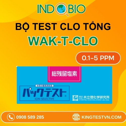 Bộ test clo tổng WAK-T-ClO đo nhanh tổng lượng clo dư và clo kết hợp trong phạm vi 0.1–5 mg/L bằng phương pháp DPD, cho kết quả nhanh trong 2 phút, dễ sử dụng, nhỏ gọn, phù hợp kiểm tra nước máy, hồ bơi và nước biển.
