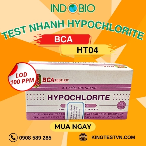 Bộ test hypochlorite HT04 được sử dụng test nhanh hypoclorid trong dưa muối, cà muối, măng ngâm…Kit kiểm tra nhanh hypoclorid cho phép phát hiện ở giới hạn 100 mg/kg, bộ kit hypoclorid được đóng gói 20 test/hộp thuận tiện sử dụng trong phòng Lab và ngoài hiện trường.