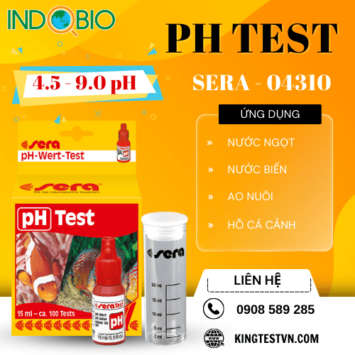 Bộ test pH Sera 04310 được sử đo pH nước hồ cá và ao cá nước ngọt lẫn nước biển với khoảng đo 4.5-9.0. Bộ test ph sera cung cấp toàn bộ thuốc thử và dụng cụ cần thiết cho 100 lần test.