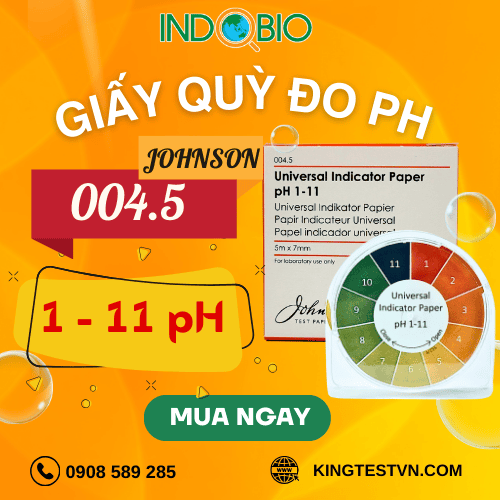 Giấy quỳ đo pH 004.5 được dùng thử pH trong khoảng đo 1-11 với đóng gói 5m x7 mm. Giấy thử độ pH 1-11 Johnson đóng gói trong hộp nhựa an toàn và tiện lợi được sử dụng trong nhiều lĩnh vực và cung cấp kèm CoA.