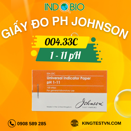 Giấy thử pH Johnson 004.33C đóng gói dạng tập 100 test, cho kết quả nhanh, trực quan, dễ sử dụng, phù hợp kiểm tra nước sinh hoạt, nước công nghiệp, thực phẩm & đồ uống, môi trường và trong phòng thí nghiệm.