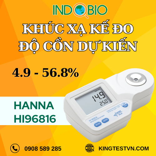 Khúc xạ kế cầm tay Hanna HI96816 đo nhanh độ cồn (4.9 - 56.8%) trong dung dịch với độ chính xác ±0.2% theo tiêu chuẩn EEC 2676/90. Máy đo chỉ cần lượng mẫu nhỏ, cho kết quả trong 1.5 giây, tự động bù nhiệt và dễ dàng vệ sinh nhờ lăng kính quang cao cấp cùng vòng thép không gỉ.