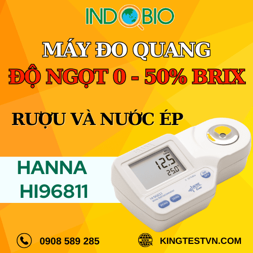 Máy đo kỹ thuật số HI96811 là thiết bị đo nhanh độ ngọt (%Brix) trong rượu vang, nước ép và mẫu ủ từ 0–50%. Thiết bị có chức năng bù nhiệt tự động, độ chính xác ± 0.2%, lý tưởng cho các nhà sản xuất rượu có thể kiểm tra tại chỗ lượng đường nhanh chóng và chính xác.