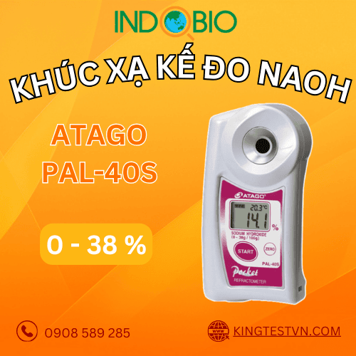 Khúc xạ kế Atago PAL-40S là máy đo cầm tay sử dụng xác định nồng độ NaOH trực tiếp trong khoảng đo 0.0-38.0% với độ chính xác ±0.2%.