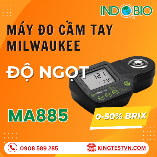 Milwaukee MA885 là máy đo độ ngọt kỹ thuật số, giúp xác định hàm lượng đường (Brix, °Oechsle, °KMW) trong rượu vang, bia, xi-rô và thực phẩm. Thiết bị cho kết quả nhanh và chính xác, có bù nhiệt tự động, màn hình LCD dễ đọc và hốc chứa mẫu bằng thép không gỉ, bền bỉ và tiện lợi cho cả phòng lab và hiện trường.S