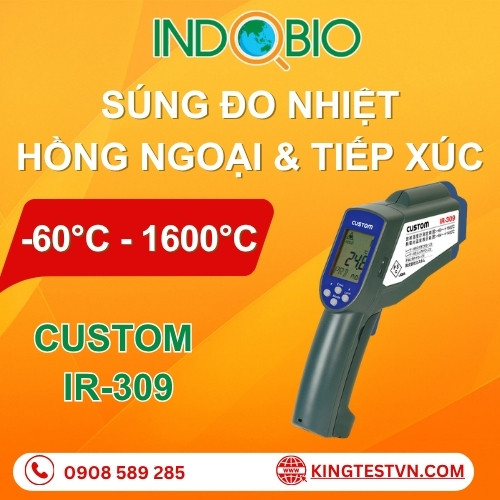 Máy đo nhiệt hồng ngoại IR-309 là dòng nhiệt kế cao cấp, kết hợp đo không tiếp xúc (hồng ngoại) và đo tiếp xúc (đầu dò kiểu K) với dải nhiệt cực rộng từ -60°C đến +1600°C. Thiết bị sở hữu hệ thống laser 2 điểm định vị chính xác vùng đo, tốc độ phản hồi cực nhanh 1 giây. Với thiết kế dạng súng dễ cầm nắm, IR-309 là lựa chọn hàng đầu cho kiểm soát nhiệt độ công nghiệp, lò nung và giám sát quy trình sản xuất.