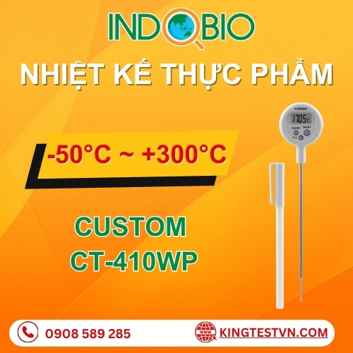 Nhiệt kế thực phẩm CT-410WP là bút đo nhiệt cầm tay, sử dụng cảm biến inox dài 140 mm, cho độ chính xác cao. Thiết bị đạt chuẩn chống nước IPX5, an toàn khi đo thực phẩm và chất lỏng, đi kèm chức năng HOLD, MAX/MIN, giao diện dễ dùng, phù hợp sử dụng trong nhà bếp, nhà hàng, sản xuất thực phẩm và phòng thí nghiệm.