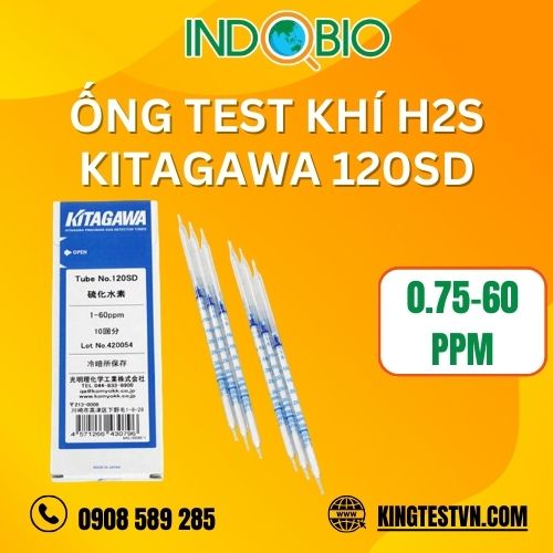 Ống test khí H2S Kitagawa 120SD đo nhanh nồng độ Hydrogen Sulphide trong không khí, thang đo 1–30 ppm, dải mở rộng từ 0.75–60 ppm. Ống test đổi màu trực quan từ trắng sang nâu nhạt, dễ đọc kết quả, sử dụng dễ dàng tại nhà máy và môi trường công nghiệp.
