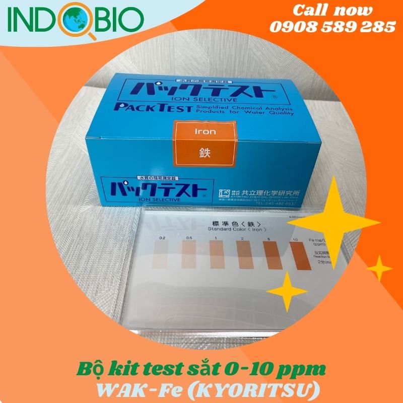 Packtest Kyoritsu Wak-Fe đo độ phèn trong nước đơn giản và nhanh chóng trong khoảng đo 0-10 ppm. Iron test kit wak-fe đóng gói nhỏ gọn với đầy đủ vật tư cho 50 lần tes và rất tiện dùng cho phòng lab cũng như ngoài hiện trường.