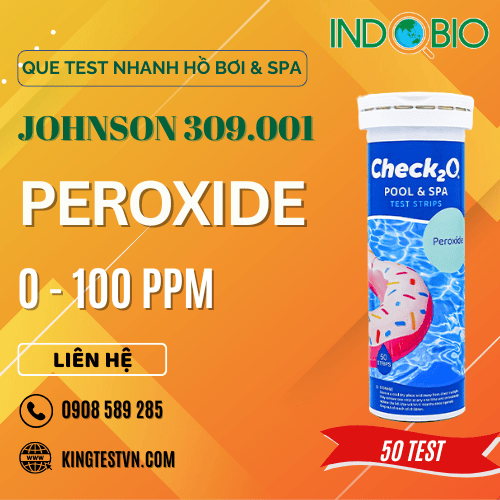 Que test peroxide Johnson 309.001 giúp kiểm tra nhanh nồng độ H2O2 trong nước hồ bơi và spa với thang đo 0–100 ppm. Que test cho kết quả sau 30s, gồm 50 que/hộp, lý tưởng cho kiểm tra định kỳ và bảo trì hồ bơi, spa an toàn.