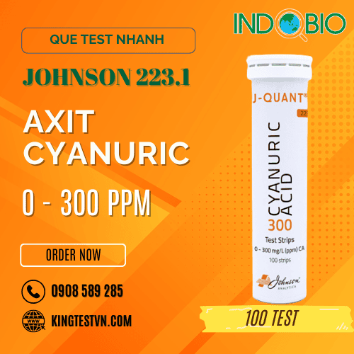 Que test 223.1 Johnson là test thử bán định lượng hàm lượng acid cyanuric trong nước, với dải đo lên đến 300 mg/L. Sản phẩm thường được sử dụng để kiểm tra nhanh nước hồ bơi và spa ngoài trời, đồng thời cũng có thể hỗ trợ các phép thử đơn giản tại phòng thí nghiệm.
