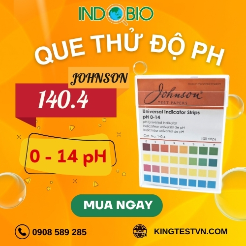 Que thử pH 140.4 của Johnson là que đo pH từ 0-14 có độ chính xác cao được đóng gói 100 test/hộp. Sử dụng que thử pH 140.4 được xem là cách kiểm tra pH chính xác và an toàn.