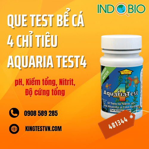 Que test bể cá 481344 là que kiểm tra nước 4 trong 1 giúp người dùng đánh giá 4 chỉ tiêu quan trọng Nitrit, kiềm tổng, pH và độ cứng trong ao, hồ, sông, suối, bể cá cảnh và hồ thủy sinh.