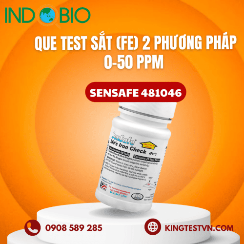 Que test kim loại nặng fe SenSafe 481046 là công cụ đo nồng độ sắt (Fe+2) hai phạm vi 0-0.3 ppm và 0-50 ppm. Que test đóng gói nhỏ gọn, kết quả nhanh trong 30s mà không bị nhiễu bởi các kim loại nặng khác.