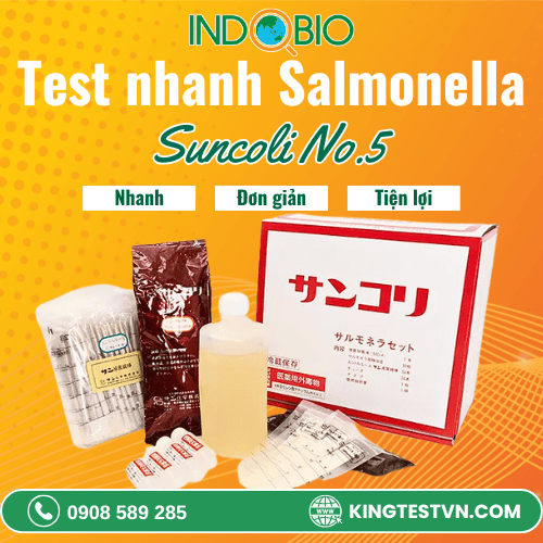 Bộ test Salmonella No.5 Suncoli giúp kiểm tra nhanh Salmonella trong thực phẩm chỉ sau 24h. Kit nhỏ gọn 50 test/hộp, thao tác đơn giản, phù hợp cho cơ sở sản xuất, phòng lab và kiểm tra hiện trường.