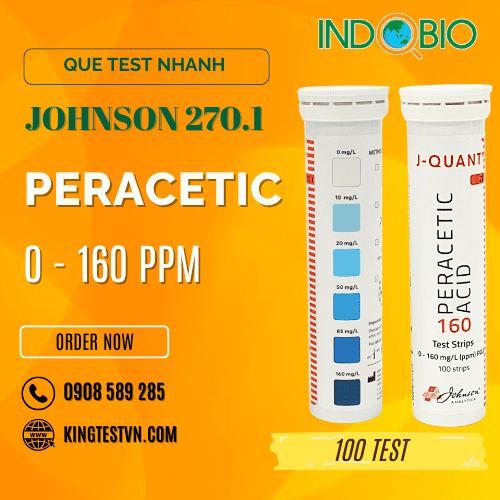 Test PAA 270.1 là test thử bán định lượng của Johnson-Anh, giúp người dùng test nhanh peracetic trong dung dịch khử trùng với khoảng đo 0-160 ppm. Que test cung cấp gồm 100 que test và bảng màu chuẩn, cho phép đo lường nhanh chóng trong nước cấp, nước thải, nước khử trùng,... hiệu quả.