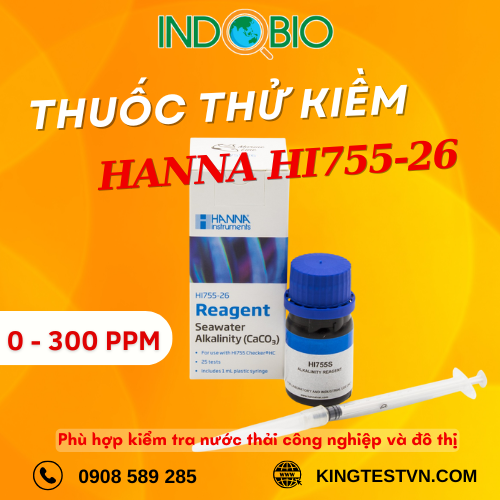 Thuốc thử kiềm HI755-26 được dùng trong nước mặn từ 0 đến 300 mg/L . Mỗi chai dung dịch có dung tích 30 mL, đủ cho 25 lần đo, tương thích với các thiết bị đo Hanna. Sản phẩm có hạn sử dụng tối thiểu 1 năm, đảm bảo kết quả chính xác, ổn định và tiết kiệm chi phí cho người dùng.