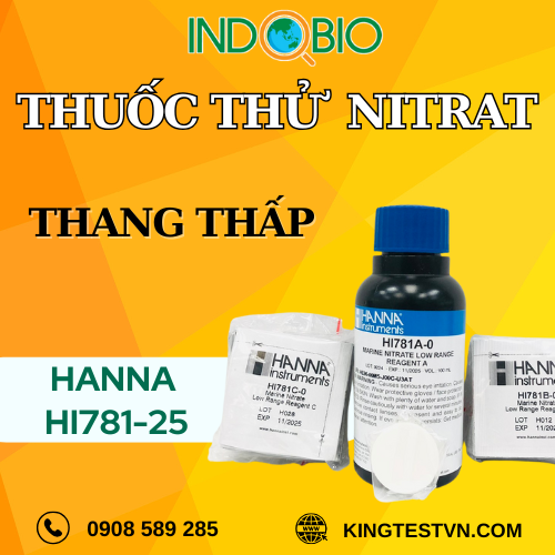 Thuốc thử HI781-25 dùng để xác định nitrat (NO₃⁻) trong nước mặn ở mức thấp, với thang đo 0.00–5.00 mg/L. Sản phẩm được đóng gói liều sẵn, dễ sử dụng và chỉ tương thích với máy đo Hanna HI781, hạn sử dụng tối thiểu 1 năm.
