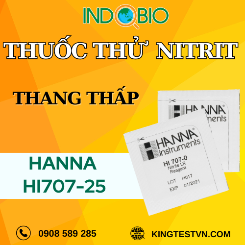 Thuốc thử HI707-25 dùng để xác định hàm lượng nitrit từ 0 đến 600 ppb trong nước sạch và thủy sản nước ngọt, dùng kèm máy đo Hanna HI707. Mỗi hộp gồm 25 gói test, dễ sử dụng và tiện bảo quản.